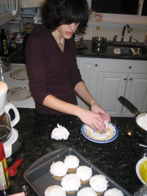 This past Wednesday and Thursday night Shane and I were baking up a storm. His boss's 50th birthday was just around the corner and he was charged with making some delicious birthday treats for him. So we picked out a recipe for my brand-spankin'-new cupcake cookbook. We couldn't make just any old box cupcakes for this occasion! We selected the Lemon Coconut Snowballs and got down to business. Here is how the events played out...
